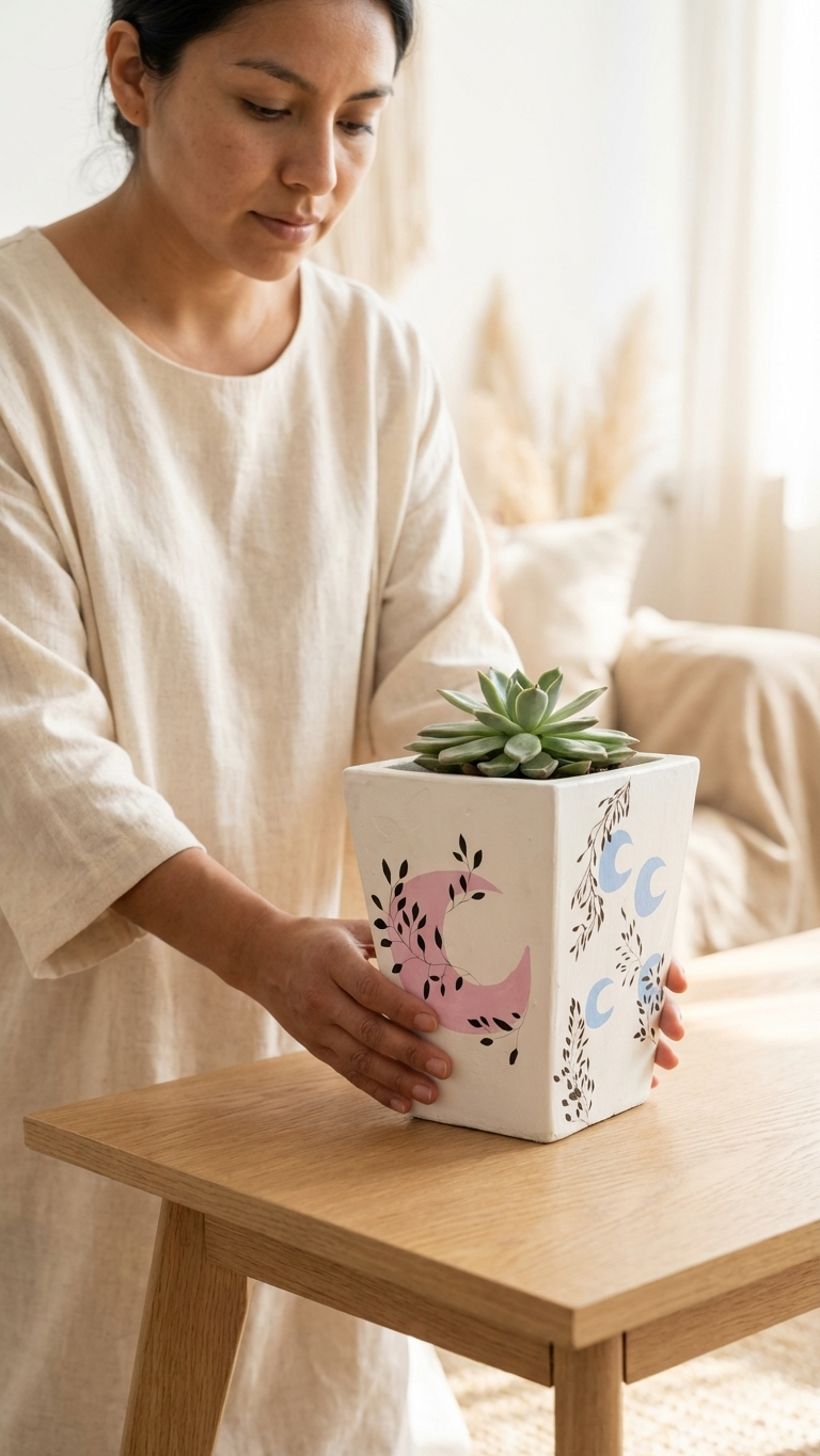 Hechas en cemento y pintadas a mano, nuestras piezas unen fuerza, belleza y propósito. Llevando armonía a cada rincón de tu hogar